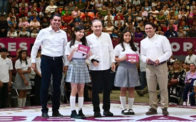 •El mandatario estatal, en cumplimiento de su compromiso de respaldar la educación de niñas, niños y jóvenes sonorenses, entregó 60 mil becas del programa Sonora de Oportunidades correspondientes al ciclo escolar 2024-2025, de las cuales siete mil 767 fueron destinadas a estudiantes de Hermosillo, con una inversión de 17 millones 87 mil 400 pesos.