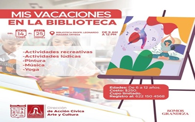 Con el objetivo de fomentar el aprendizaje y la participación de niñas y niños durante el próximo periodo vacacional de verano, el Ayuntamiento, que preside el alcalde Luis Fuentes Aguilar, a través de la Dirección de Acción Cívica, Arte y Cultura, llevará a cabo el programa ‘Mis vacaciones en la biblioteca’.